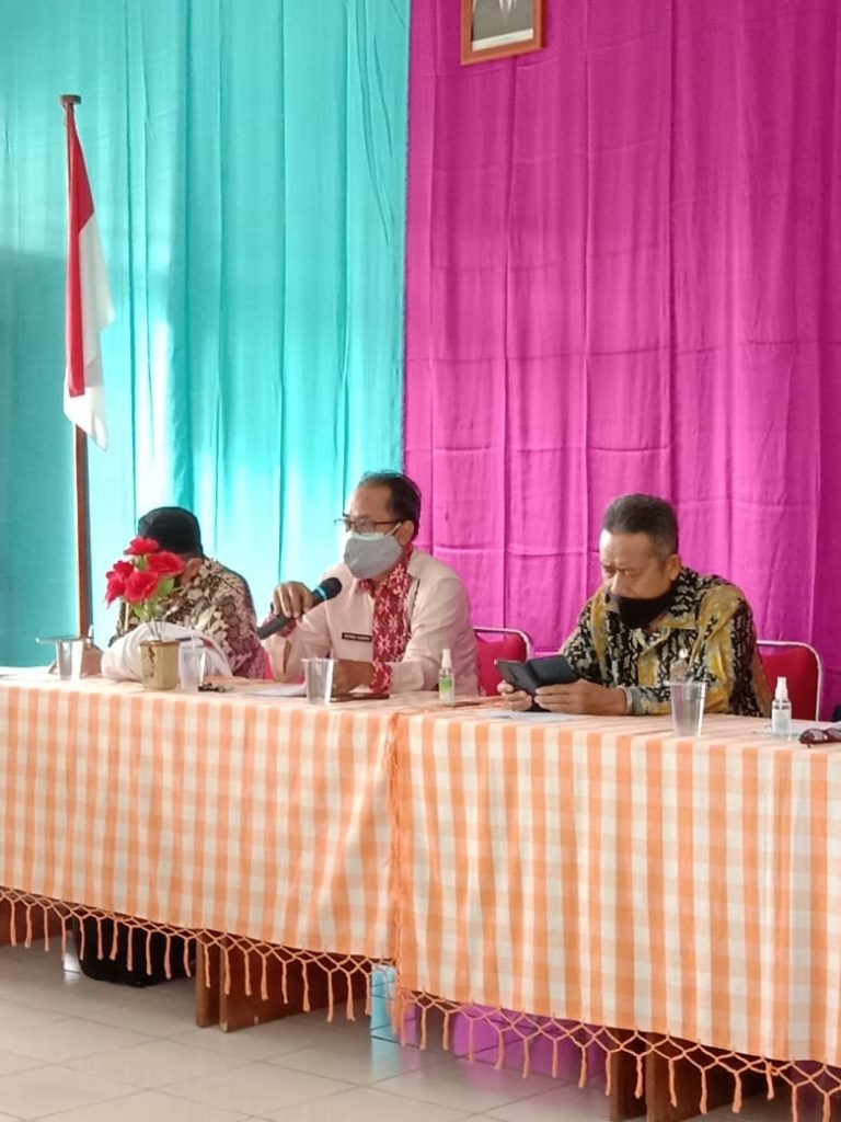 Putussibau – Kamis, 24 Juni 2021 Dinas Pendidikan dan Kebudayaan Kabupaten Kapuas Hulu melaksanakan rapat sosialisasi kebijakan Dinas terkait Penerimaan Peserta Didik Baru (PPDB), Pengenalan Lingkungan Sekolah (PLS) untuk peserta didik baru dan Penyusunan Kalender Pendidikan Tahun Pelajaran 2021/2022. Rapat diselenggarakan di SD Negeri 4 Putussibau dan dihadiri oleh Kepala Dinas, Sekretaris Dinas, perwakilan Kantor Kementerian Agama Kabupaten Kapuas Hulu, Kepala Bidang Dikdas, Kepala dan Staf Seksi Kurikulum SD dan SMP, para pengawas dan kepala sekolah di Putussibau. Dalam arahannya, Kepala Dinas Pendidikan dan Kebudayaan Kabupaten Kapuas Hulu, Petrus Kusnadi, S.Sos, M.Si, menekankan pentingnya vaksinasi bagi seluruh tenaga pendidik dan kependidikan pada setiap satuan pendidikan. Jika para guru tidak sadar vaksin, dampaknya sangat serius di masyarakat. Akan semakin banyak warga masyarakat yang tidak sadar vaksin dan tidak menaati protokol kesehatan. Angka penularan Covid-19 akan semakin mengkhawatirkan dan negara kita tidak akan bisa segera keluar dari krisis pandemi Covid-19 yang pada gilirannya menghambat pemulihan ekonomi. Kepala Dinas menyatakan pula bahwa pada prinsipnya Pemerintah Daerah tidak melarang Pembelajaran Tatap Muka (PTM). Hanya saja, sebelum menginstruksikan pelaksanaan PTM, Kepala Daerah perlu mendapatkan informasi yang akurat tentang kesiapan satuan-satuan pendidikan. Kesiapan-kesiapan tersebut terutama menyangkut ketersediaan sarana sanitasi, pelaksanaan/penegakan protokol kesehatan, koordinasi dengan koordinator Satgas Penanggulangan Covid-19 di tingkat kecamatan dan vaksinasi seluruh tenaga pendidik dan kependidikan pada setiap satuan pendidikan. Kepala Dinas menginstruksikan seluruh jajarannya, terutama para pengawas sekolah, untuk memastikan kesiapan setiap satuan pendidikan dalam melakukan PTM. Kepala Dinas juga mengingatkan bahwa apabila kesadaran warga tentang protokol kesehatan dan vaksinasi tidak menunjukkan peningkatan, TNI akan dilibatkan untuk melakukan tindakan yang lebih tegas. Diinformasikan pula bahwa mulai 25 Juni sampai dengan 30 Juni 2021 akan dilaksanakan vaksinasi di kepolisian-kepolisian sektor. Kepala Dinas mengingatkan supaya kesempatan ini dimanfaatkan untuk mendapatkan vaksinasi terutama oleh para pendidik dan tenaga kependidikan. “Jangan ragu-ragu karena vaksin itu halal, sehat dan aman,” dia menambahkan.