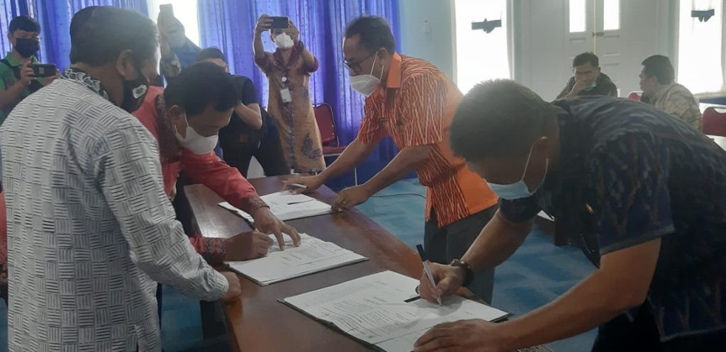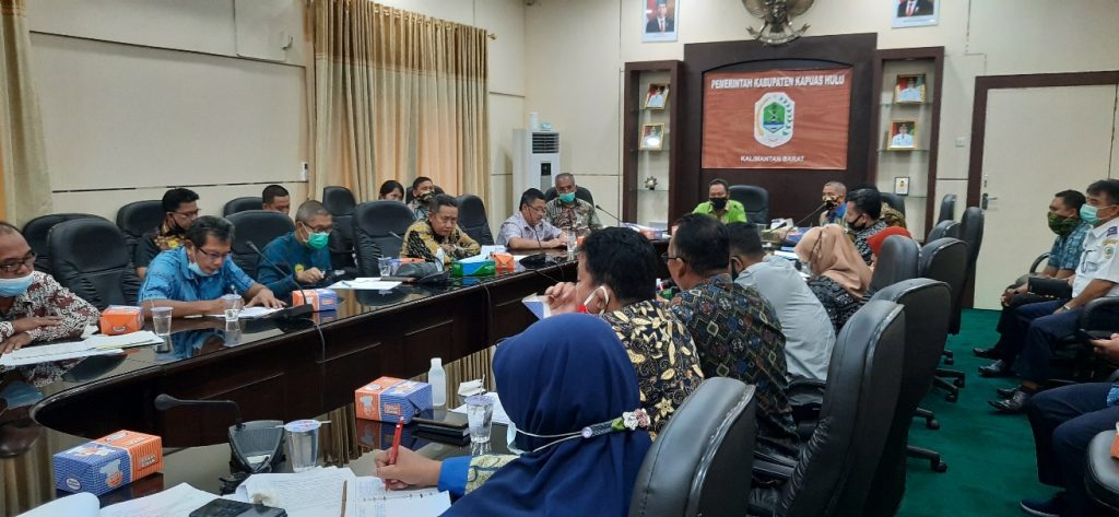Putussibau – Seluruh Kepala Organisasi Perangkat Daerah (OPD) Lingkup Pemerintah Kabupaten Kapuas Hulu menandatangani Perjanjian Kinerja Tahun 2021 dan Pakta Integritas dihadapan Bupati Kapuas Hulu A. M. NASIR, S.H, di Ruang Aula BAPPEDA,.