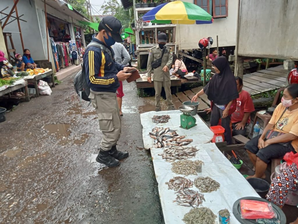 Satuan Polisi Pamong Praja Kab. Kapuas Hulu lakukan peneguran pada pedagang kaki lima (PKL) yang berjualan di bahu jalan di pasar pagi putussibau jalan bustami pada selasa (2/1/2021). Komandan regu pasar Yanuarius meningan mengatakan, peneguran.