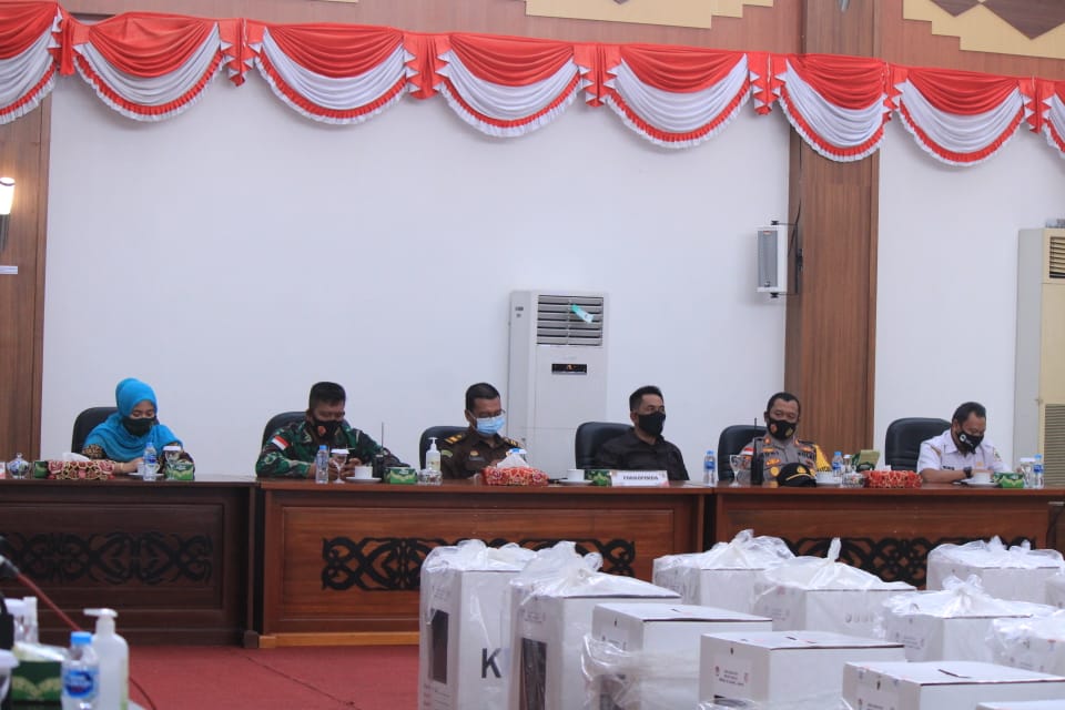 Rapat Pleno Rekapitulasi dan Penetapan Hasil Penghitungan Suara tingkat Kabupaten Kapuas Hulu dalam Pemilihan Bupati dan Wakil Bupati Kapuas Hulu Tahun 2020 diselenggarakan oleh Komisi Pemilihan Umum Kabupaten Kapuas Hulu di Ruang Rapat Paripurna.