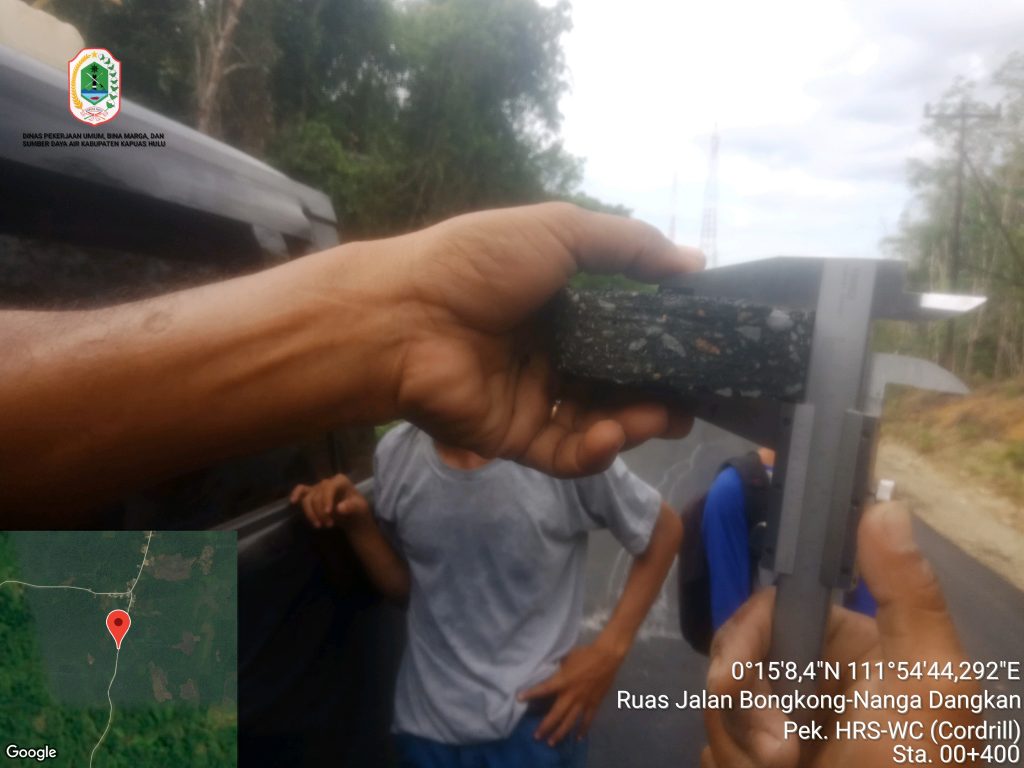 PUTUSSIBAU. Bidang Bina Marga lakukan Core Drill Pekerjaan WRS-WC Ruas Jalan Bongkong – Nanga Dangkan Kecamatan Silat Hulu/Silat Hilir Selasa (03 Nopember 2020) Pekerjaan Aspal (HRS-WC) salah satu item Pekerjaan yang dilaksanakan oleh.