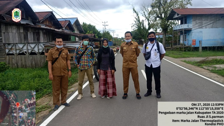 PUTUSSIBAU – Penyedia jasa bersama PPK dan Penanggung Jawab Lapangan lakukan PHO pada Paket Pekerjaan Pengadaan Marka Jalan Kabupaten pada Ruas Jalan di Dalam Ibukota Kabupaten Selasa (27/10/2020). Pada paket pekerjaa Pengadaan Marka Jalan.