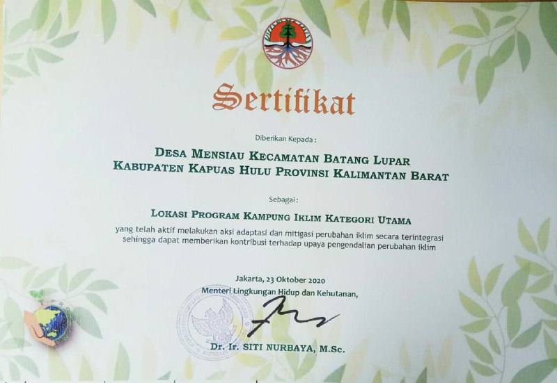 Nama kabupaten Kapuas Hulu kembali terangkat di tingkat Nasional. Pasalnya pada tahun 2020 ini ada 3 sertifikat penghargaan yang diraih kabupaten yang merupakan Jantung Kalimantan atau Heart of Borneo ini dari Kementerian Lingkungan.