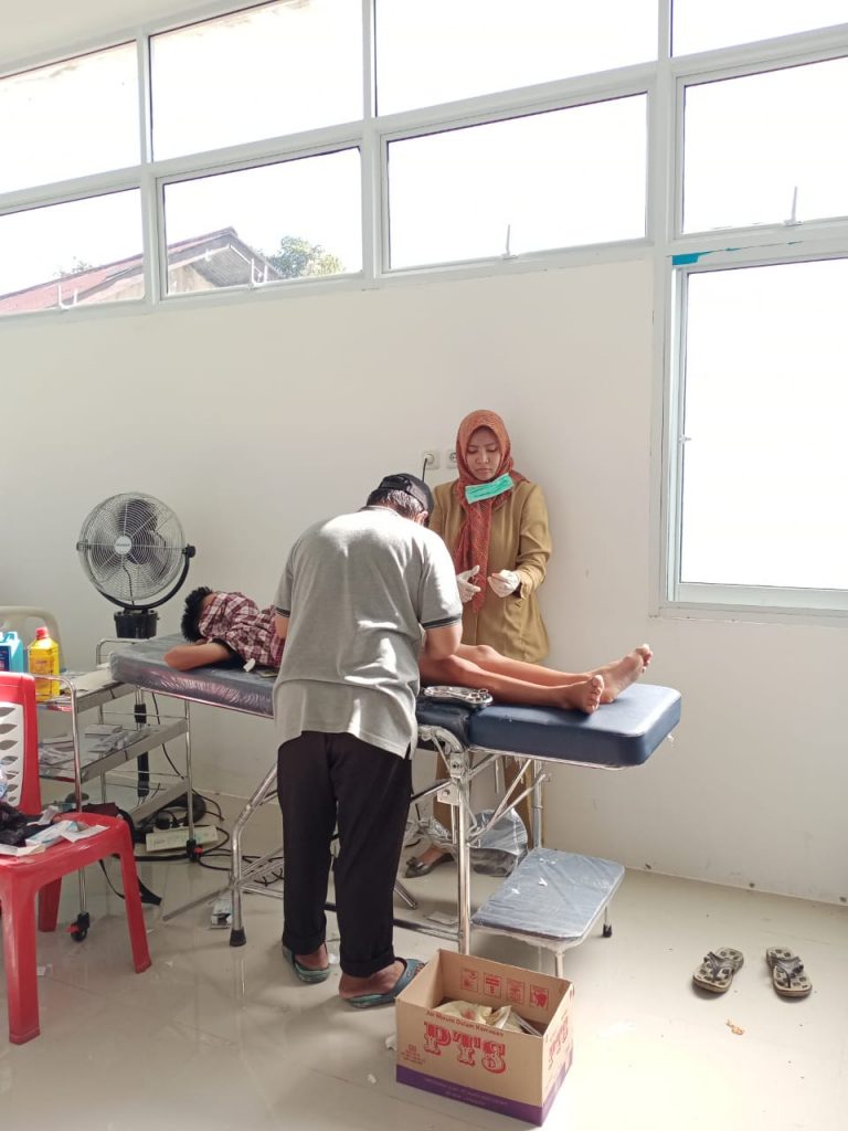 Tim Kesehatan memfasilitasi kegiatan Sunatan Masal yang diselenggarakan oleh Tim Pemberdayaan Kesejahteraan Keluarga (PKK) Kecamatan Kalis, Selasa (20/10/2020). Dalam kegiatan tersebut hadir juga Tim Penggerak PKK Kabupaten yang dipimpin.