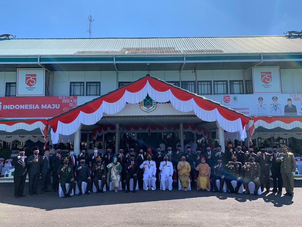 PUTUSSIBAU – Kepala Dinas Pekerjaan Umum, Bina Marga dan Sumber Daya Air Kabupaten Kapuas Hulu ikuti Apel Peringatan HUT ke 75 Kemerdekaan Republik Indonesia di Halaman Kantor Bupati Kapuas Hulu Senin (17/8/2020). Akibat wabah Covid 19 belum.