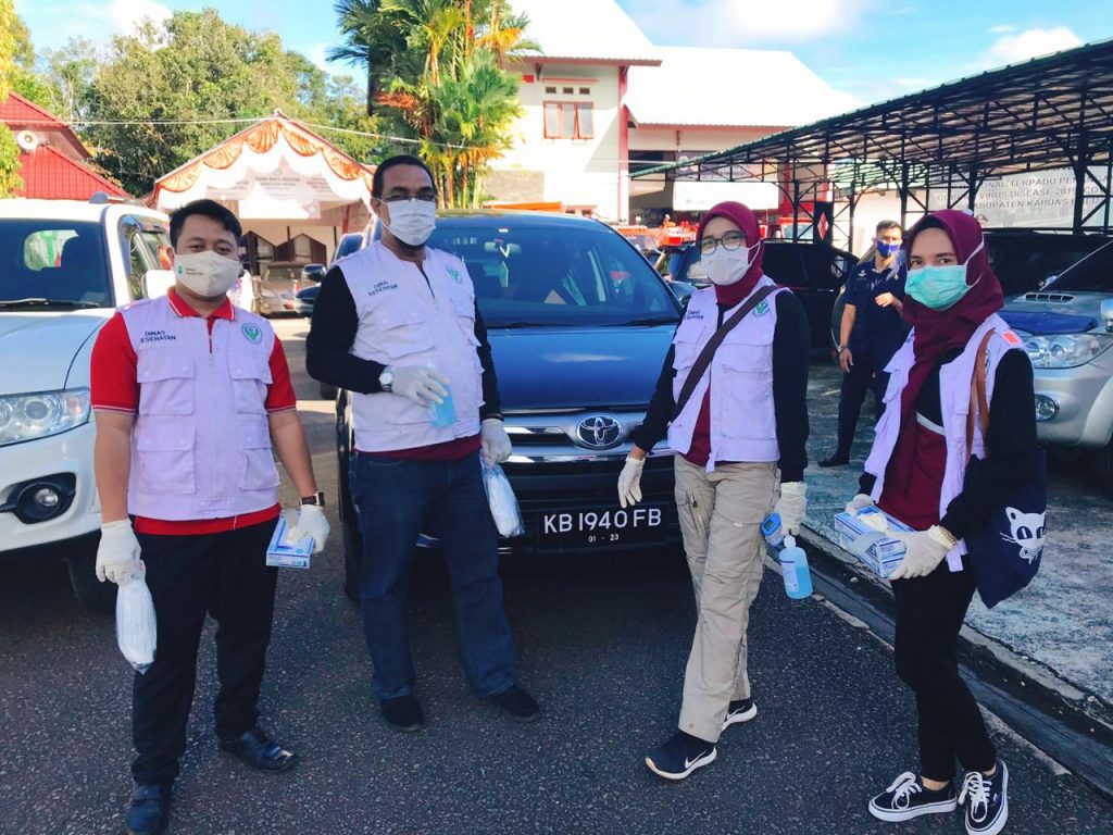 Kasi Pelayanan Khusus Rujukan Suhardiyanto, SKM.,M.Si bersama tim kesehatan Dinas Kesehatan Kabupaten Kapuas Hulu melakukan pengawalan kesehatan pada apel pengibaran bendara 17 Agustus di halaman kantor Bupati dan acara Virtual di.