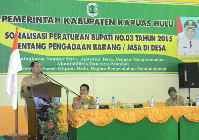 Pemerintah Kabupaten Kapuas Hulu menggelar sosialisasi Peraturan Bupati (Perbup) Kapuas Hulu Nomor 3 tahun 2015 tentang Pengadaan Barang/Jasa Di Tingkat Desa, Rabu (25/3/2015) pagi, di Rumah Adat Melayu, Kedamin. Sosialisasi yang dibuka oleh Wakil.