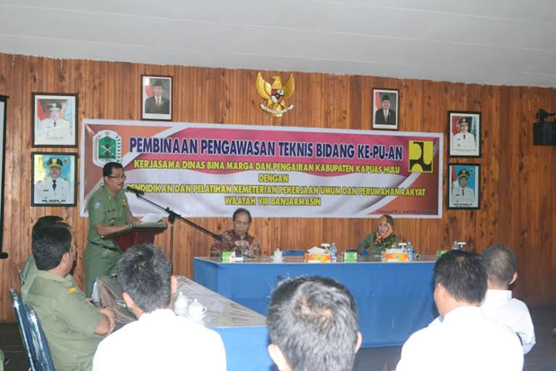 SelengkapnyaDinas Bina Marga dan Pengairan Kabupaten Kapuas Hulu menggelar Pembinaan pengawasan teknis bidung ke-PU-an, Senin (9/3/2015). Kegiatan hasil kerjasama dengan Balai Pendidikan Pelatihan Kementrian Pekerjaan Umum dan Perumahan Rakyat (BP2KPUPR)Wilayah.