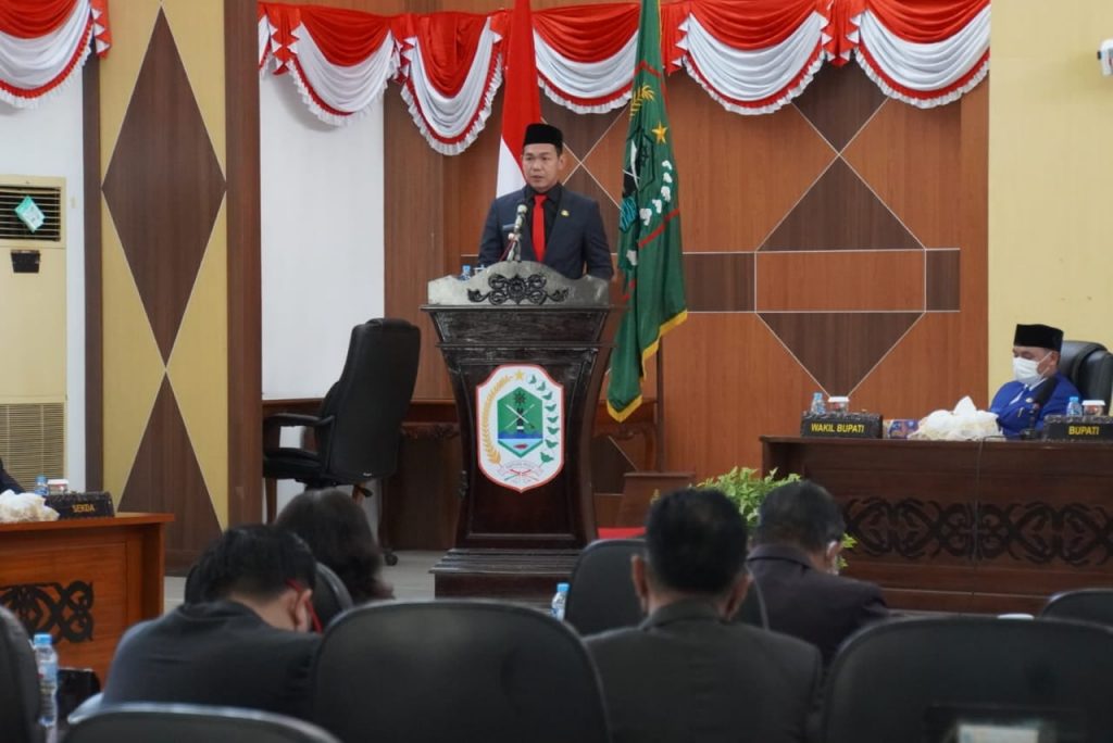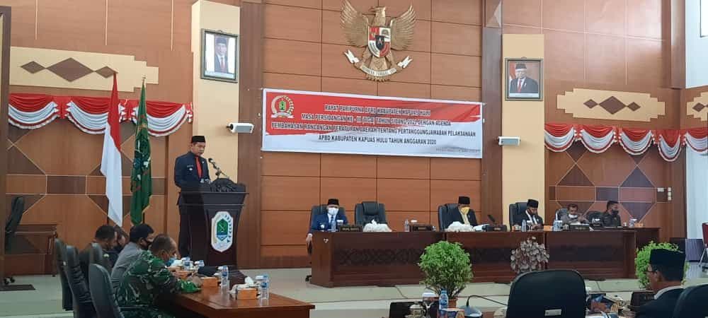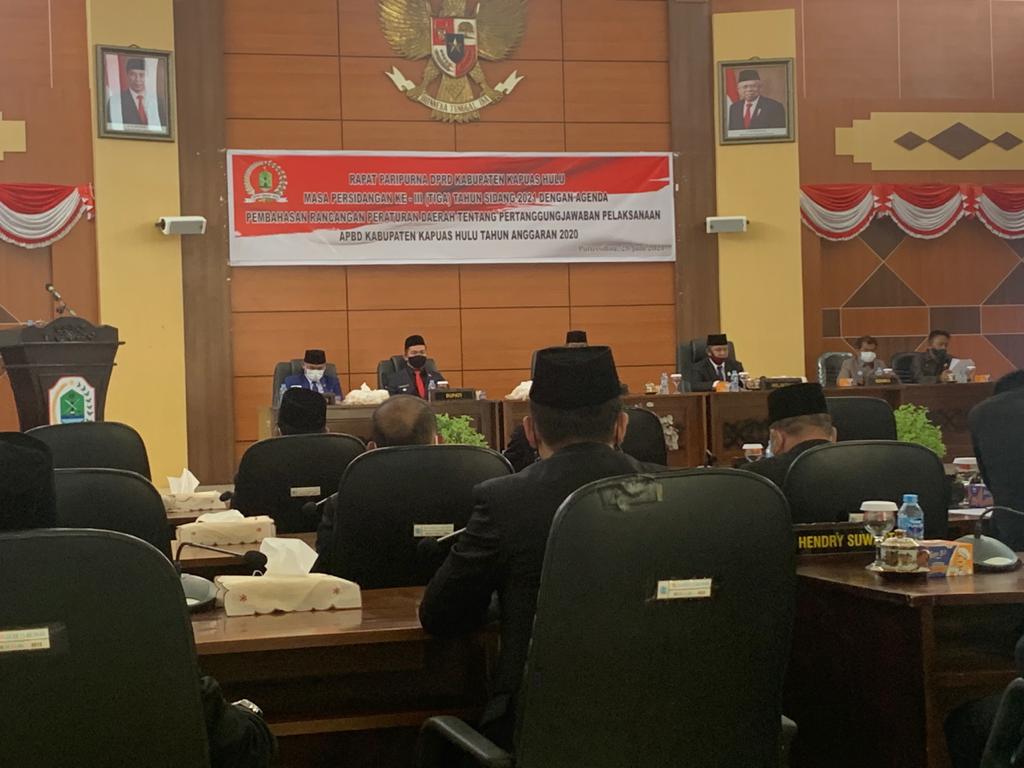 SelengkapnyaPutussibau – Bupati Kapuas Hulu Fransiskus Diaan menyampaikan pidato pengantar terhadap pembahasan Rancangan Peraturan Daerah tentang Pertanggungjawaban Pelaksanaan APBD Kabupaten Kapuas Hulu tahun anggaran 2020 di Gedung DPRD Kapuas.