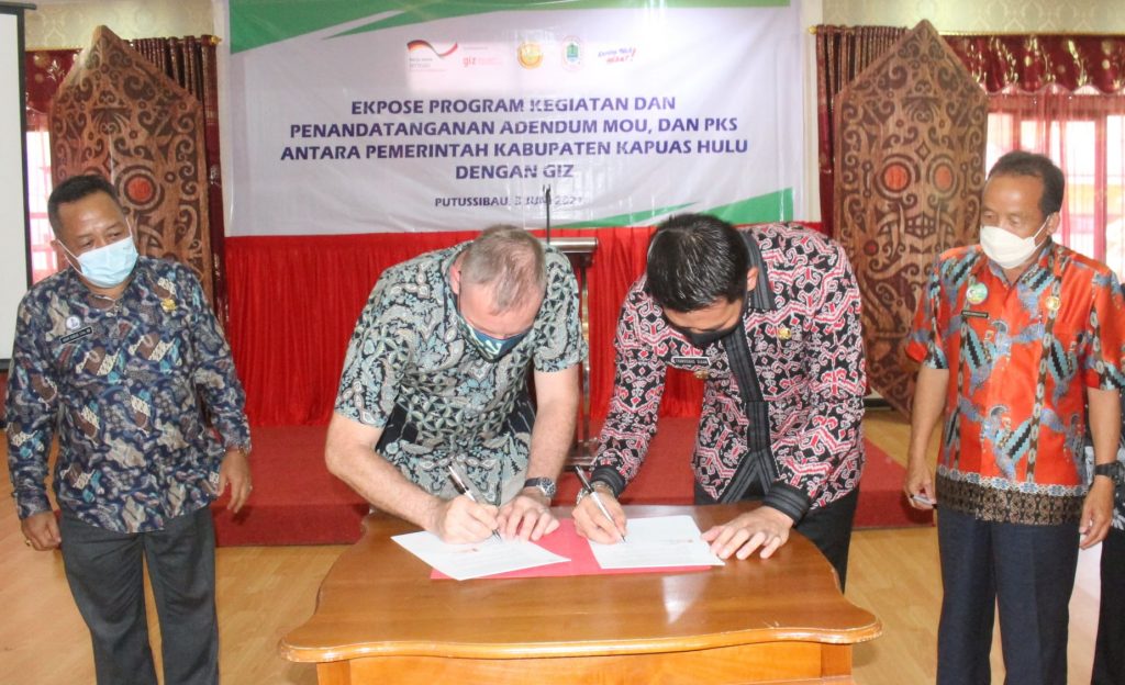 SelengkapnyaBupati Kapuas Hulu Fransiskus Diaan, S.H bersama pihak GIZ Sasci melaksanakan Penandatanganan Adendum MoU dan PKS di Pendopo terkait Kerjasama Lanjutan Membangun Rantai Pasok Pertanian Berkelanjutan. Penandatanganan berlangsung di pendopo.