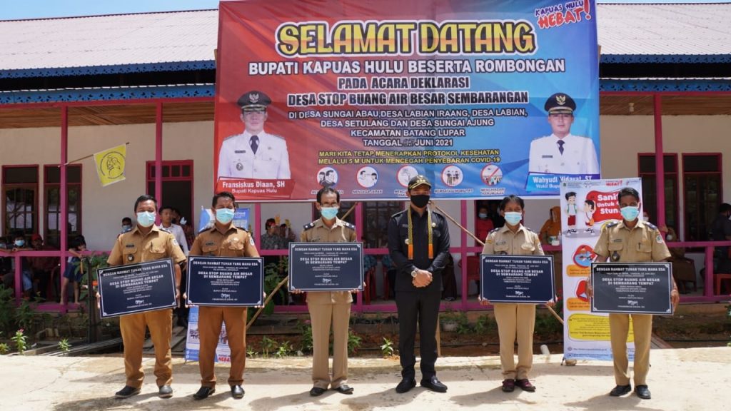SelengkapnyaBupati Kapuas Hulu beserta jajaran SKPD mendeklarasikan 5 Desa Stop Buang Air Besar Sembarangan yang kegiatannya berpusat di Dusun Sawah Desa Sungai Abau Kecamatan Batang Lupar (7/6/2021). Kepala Desa Sungai Abau Emanuel Badi menyampaikan ucapan.
