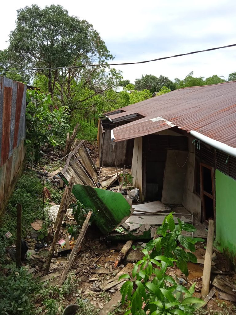 Dua rumah warga di daerah Jalan Danau Kayan, kelurahan Putussibau Kota, kecamatan Putussibau Utara roboh. Dua rumah tersebut ambruk karena tanah disekitar bangunan tersebut longsor akibat curah hujan yang tinggi Jumat (21/5/2021). Kepala.