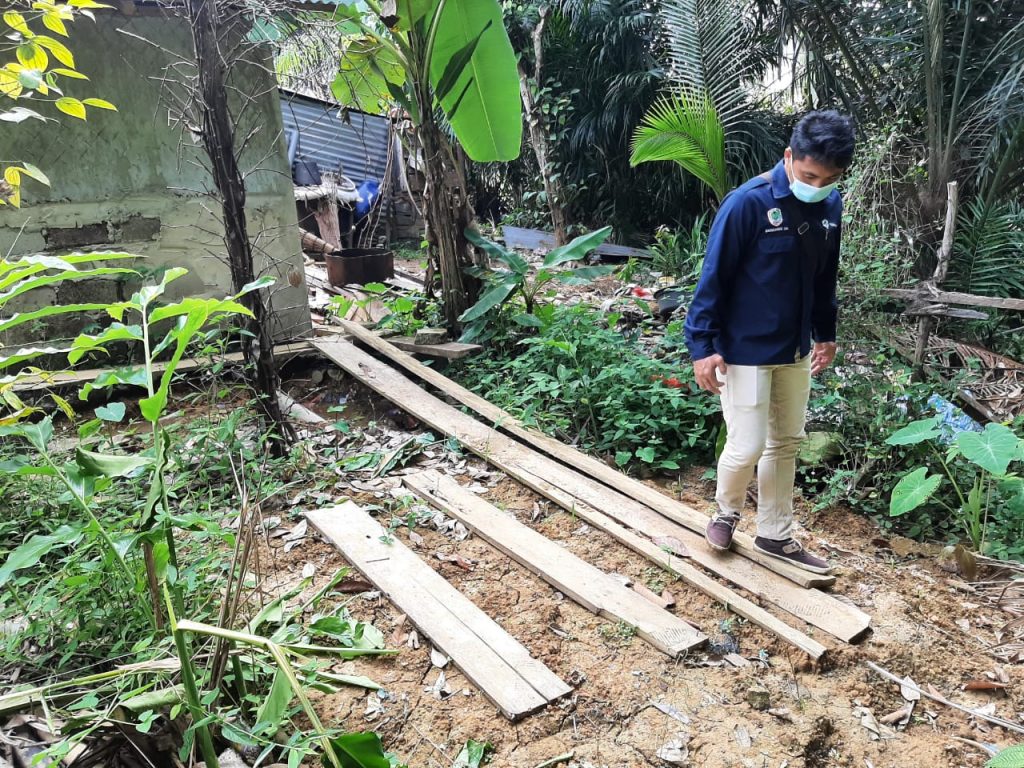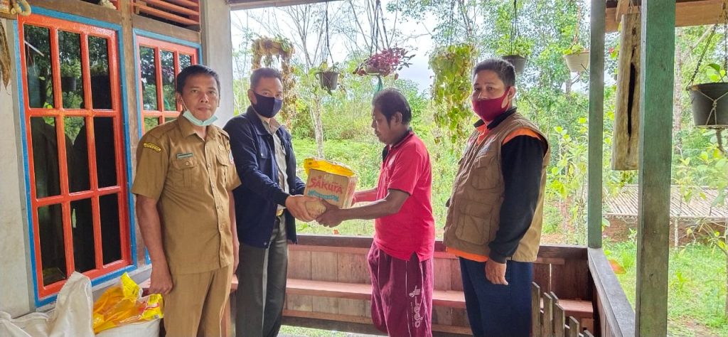 Kepala Badan Penanggulangan Bencana Daerah Kabupaten Kapuas Hulu, Gunawan,S.Sos bersama jajarannya mengunjungi Raymundus Ramang sekaligus memberikan bantuan logistik, Selasa (9/3/2021). Raymundus Ramang adalah korban kebakaran satu unit rumah.