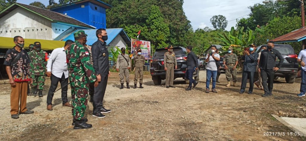 Bupati Kapuas Hulu, Fransiskus Diaan mengunjungi lokasi program TMMD ke 110 di Desa Hulu Pengkadan kecamatan Pengkadan dan Desa Beringin Kecamatan Hulu Gurung, Jumat (5/3/2021). Salah satu program fisik dari TMMD adalah membangun jalan yang.