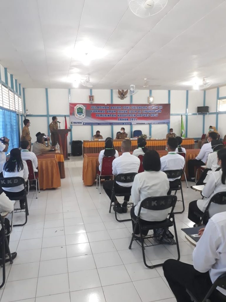 Badan Kepegawaian dan Pengembangan Sumber Daya Manusia melalui Bidang Pengembangan Sumber Daya Aparatur menyelenggarakan kegiatan Pelatihan Dasar Calon Pegawai Negeri Sipil (CPNS) Formasi Umum Tahun 2019 Di Lingkungan Pemerintah Kabupaten Kapuas.