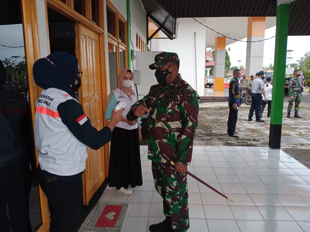 Seksi Pelayanan Kesehatan Rujukan dan Khusus Dinkes Kapuas Hulu melaksanakan pelayanan penetapan protokol kesehatan dalam penyambutan rombongan bupati dan wakil bupati Kapuas Hulu, Minggu (28/2) Penerapan Protokol Kesehatan dimulai dari.